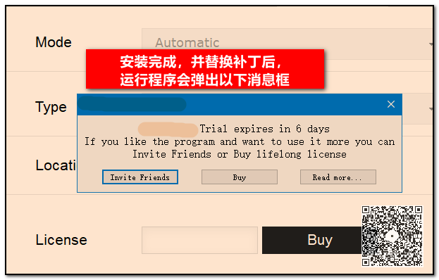 1.安装完成安装包,并用补丁替换软件安装目录下的文件之后,再次运行电脑桌面上的软件快捷键,会弹出如下图所示的消息框,咋一看还以为激活补丁不管用,请耐心进行下一步操作即可完美激活。