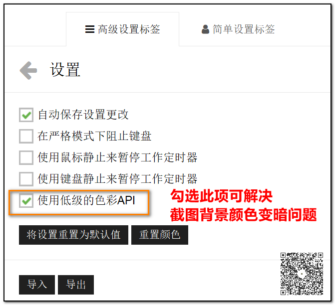 最后说说,为什么上面的截图背景颜色变暗,以及如何解决这个问题。这是因为这个护眼工具是智能的,可以根据用户场景变化智能调整颜色,神器妹一直没有找到解决方式,今天试着勾选了使用低级的色彩API,结果如下图所示,完美解决了上述问题。