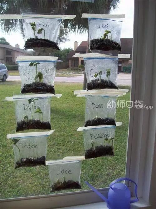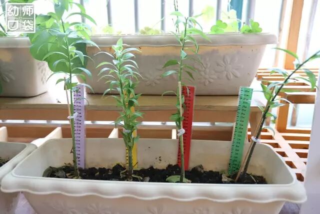 除了贴纸标签,盆栽上还可以插上孩子的照片,不仅让自然角更活泼,还能激发孩子的责任感,好好照顾属于自己的盆栽。