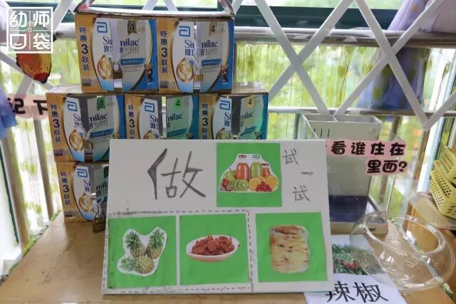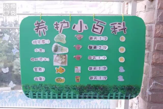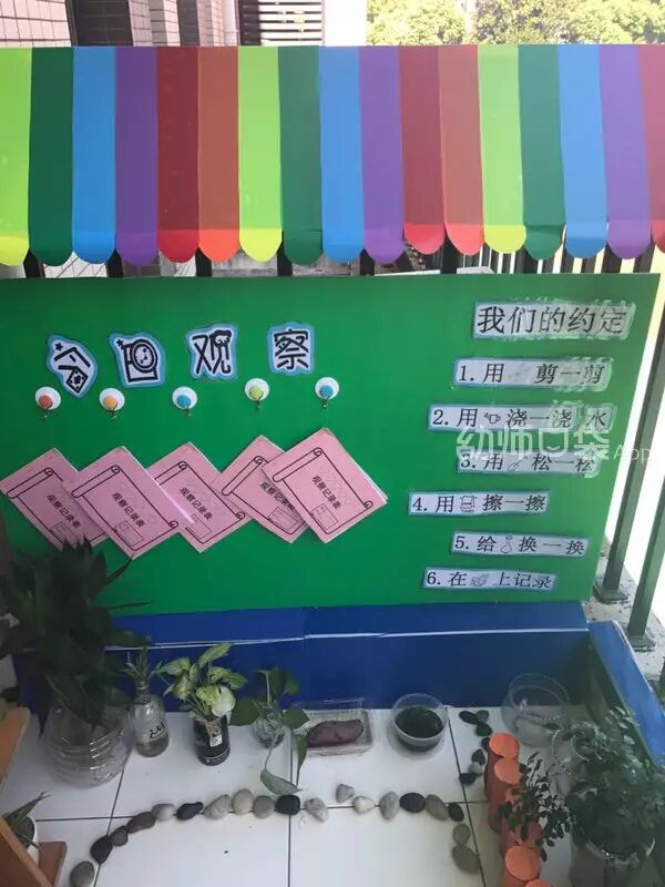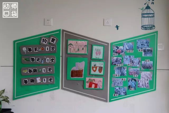 自然角的布置中,还可以加上孩子们的活动照片,制造出温馨的感觉,更能吸引孩子呢~