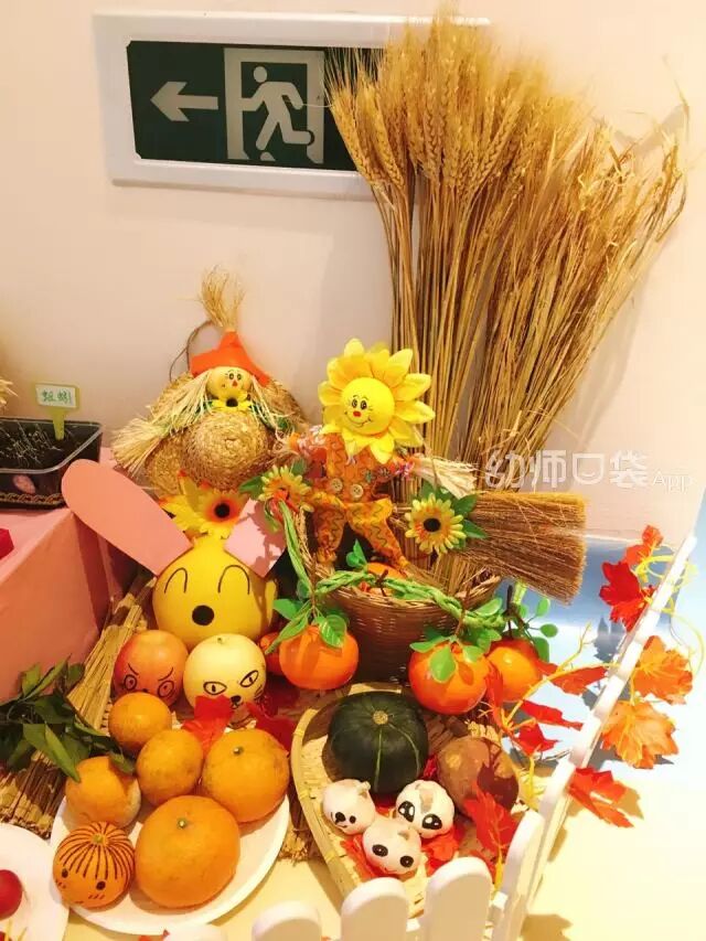 麦穗、红叶、橘子、南瓜等等秋天特有的元素投放在自然角里,瞬间秋意浓浓。