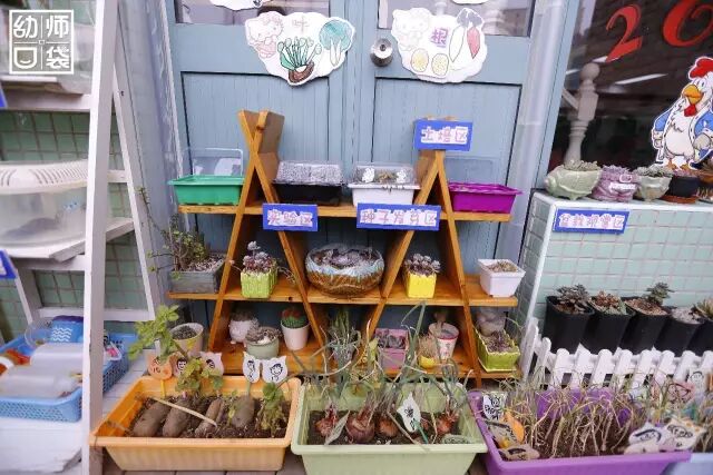 自然角可不是将盆栽随意摆放在一角那么简单,花些心思做一些创意的布置,可以让自然角更有生机,也更让孩子眼前一亮。