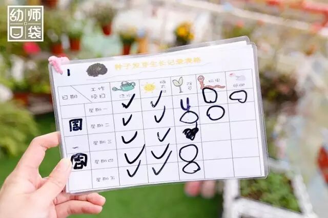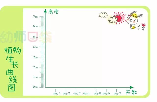 持续的观察记录,才能让孩子在新鲜感消失之后依然对植物角保持热情。一张成长周记图,记录孩子照顾植物的状况,一张植物生长曲线图,可以记录植物的生长情况,既可以帮助探索发现规律,又可以提升孩子的责任意识。