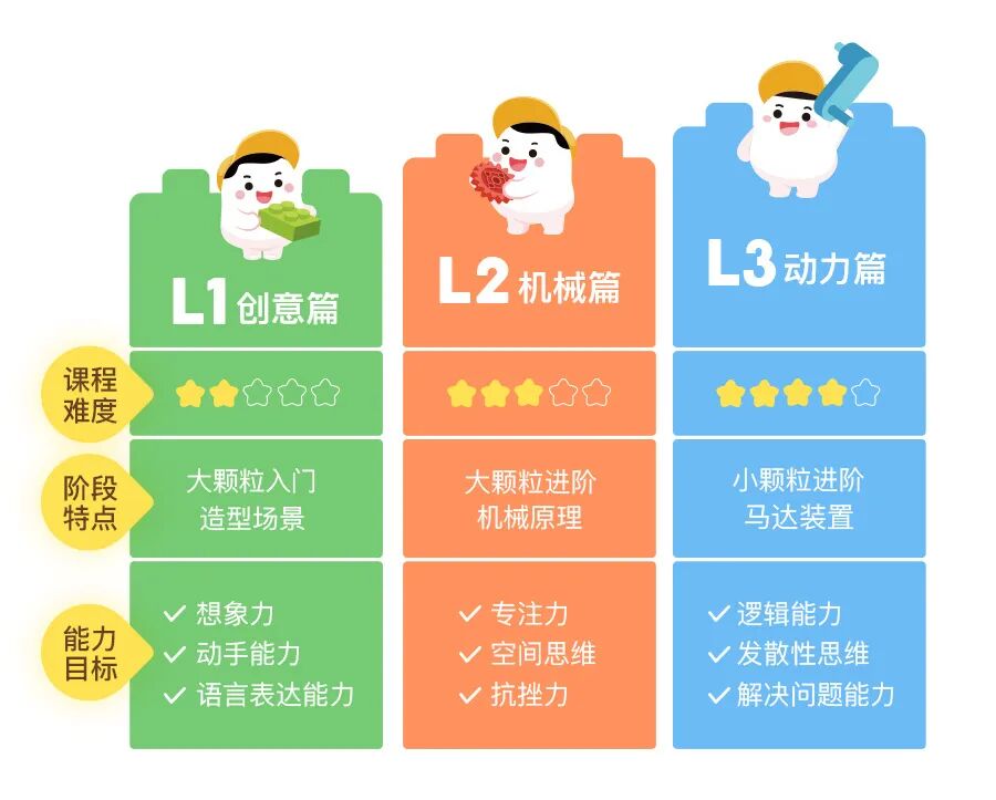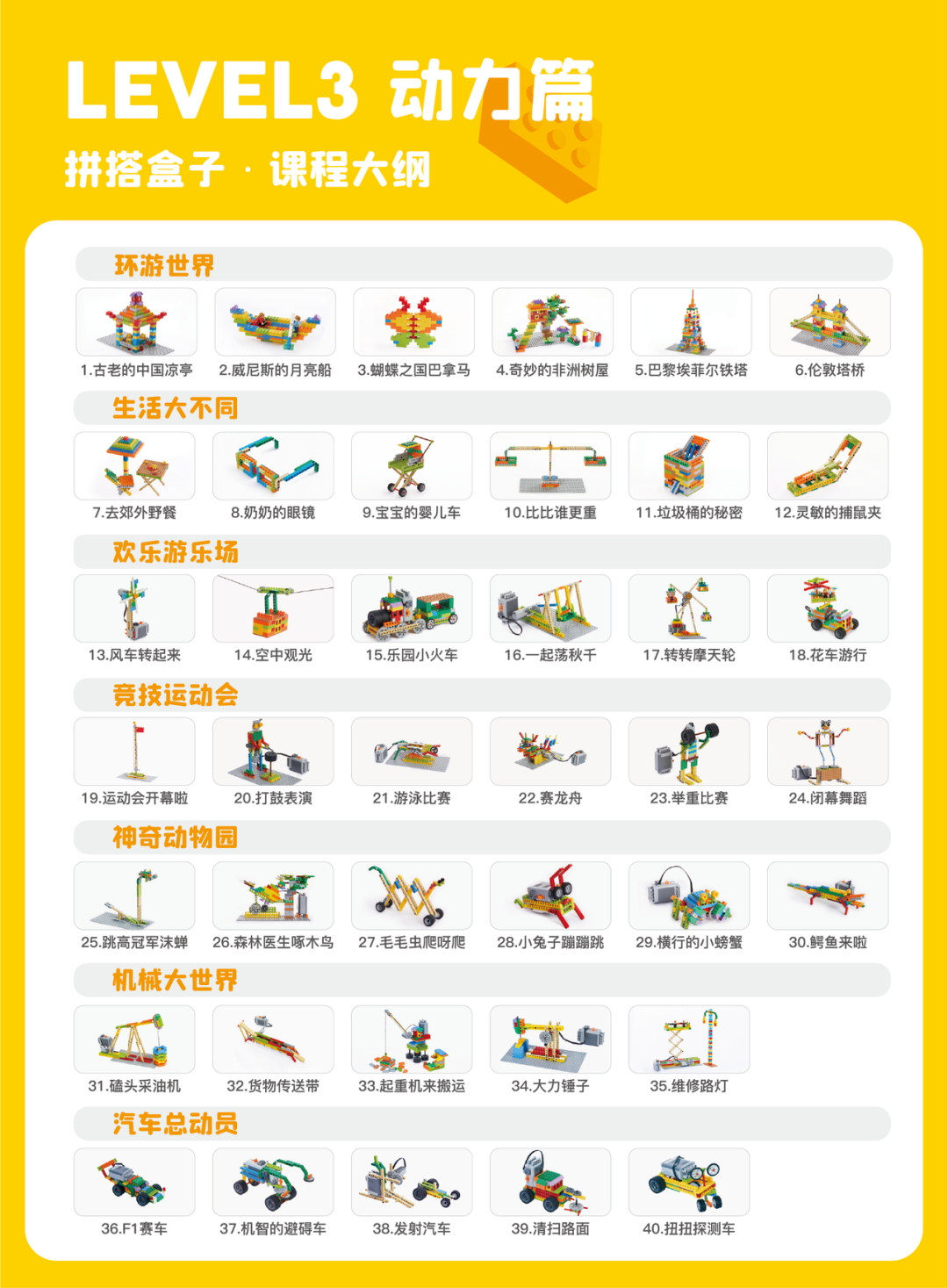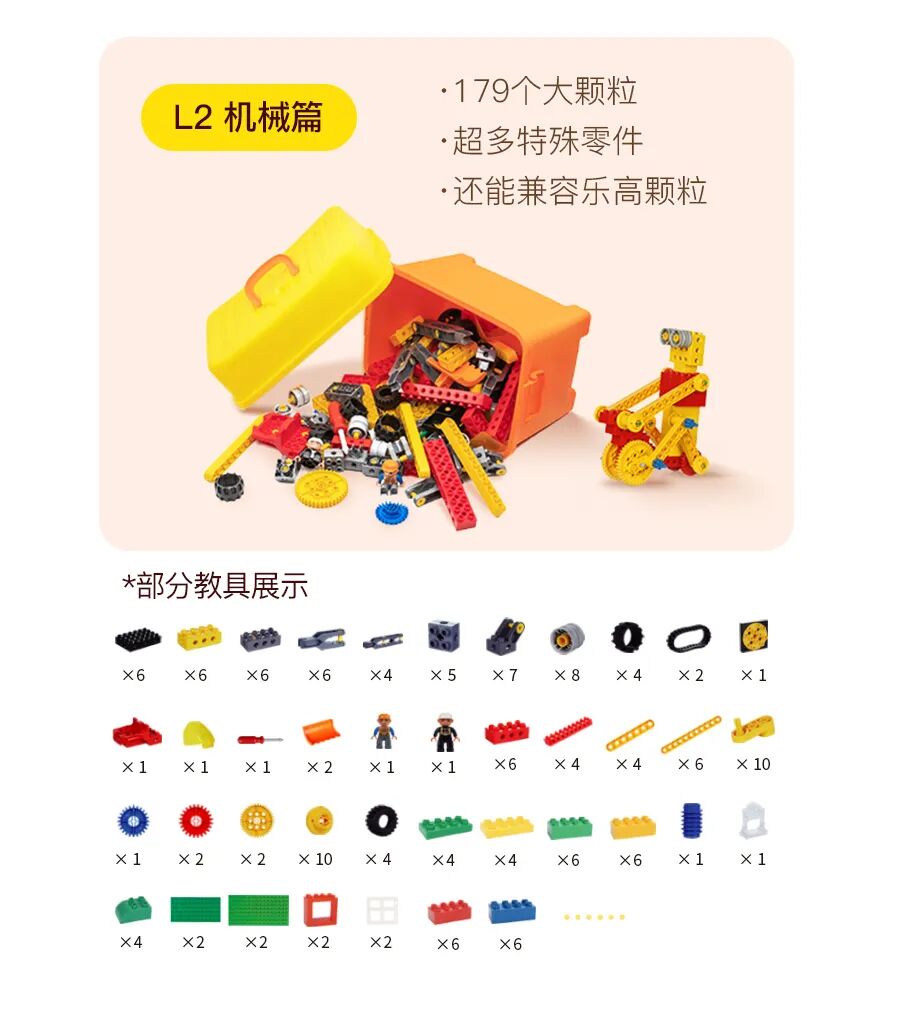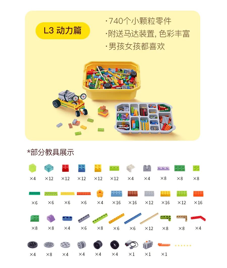 今年,我们又全新推出了 L3《动力篇》小颗粒进阶课,让更多宝宝在家就能学到“万元积木课”!