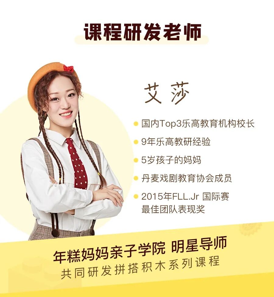 好的课程必然少不了好的老师,艾莎老师可是我们学院的明星老师,相信上过前两阶拼搭课程的年糕妈妈粉丝们,都已经很熟悉了!