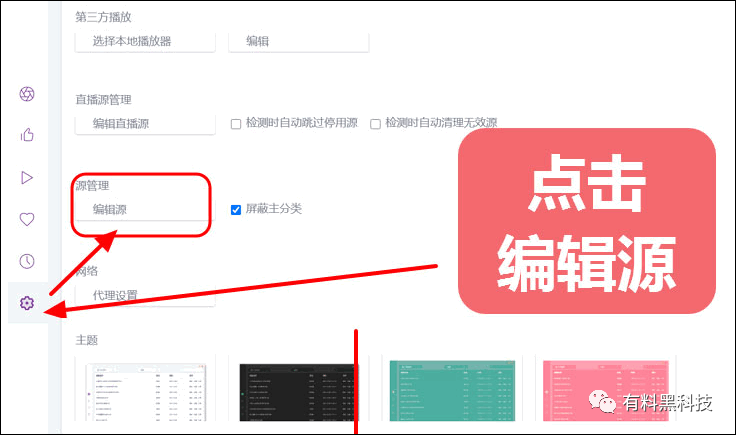 2.支持编辑源.,在设置页面点击"编辑源",会打开编辑页面,在这里你可以删除不工作或不喜欢的源,添加新源,或者拖曳某个源重新排序;