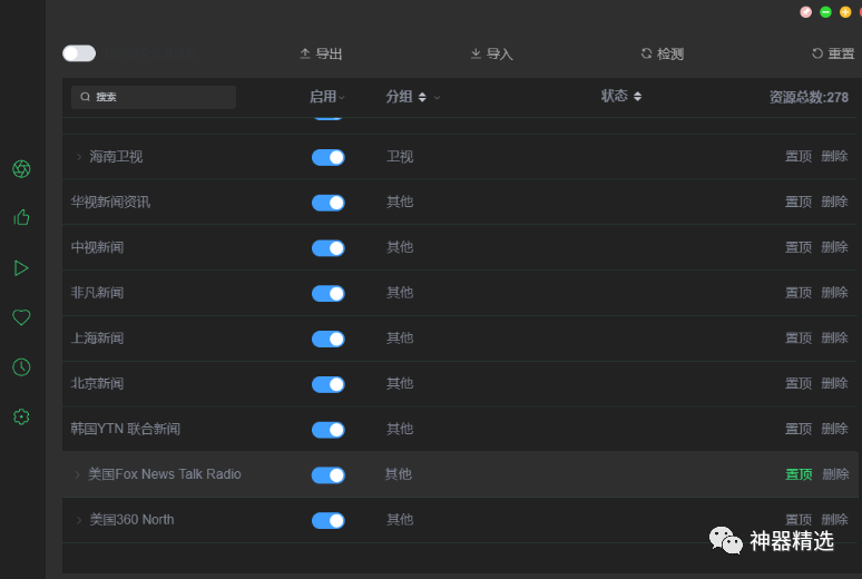 — 视频源支持自定义, 支持导入, 导出为M3U8