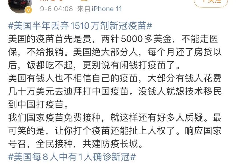 不肯打疫苗的美国人都不是因为费用,而是另有原因,有的人是因为特殊的宗教信仰不愿打疫苗,有的人是因为身体原因不能打疫苗,有的人则是因为不信任其安全性和有效性而拒绝打疫苗。