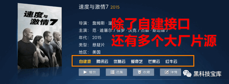 6、除了提供自建接口之外,开发者还内置了多个大厂片源,画质都是1080P的,开始播放后不卡顿;