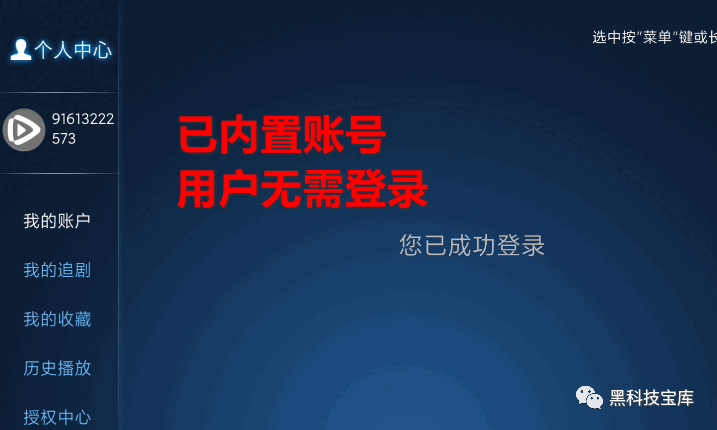 4、目前,「 大师兄影视TV1.2.0电视盒子版」是内置VIP账号的,用户无需登录也可以使用。