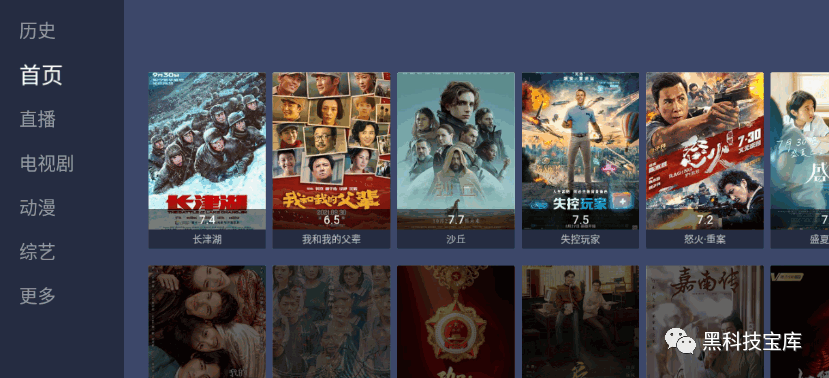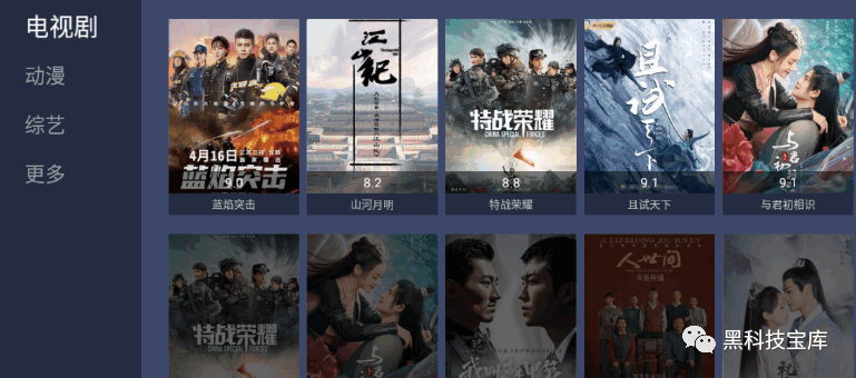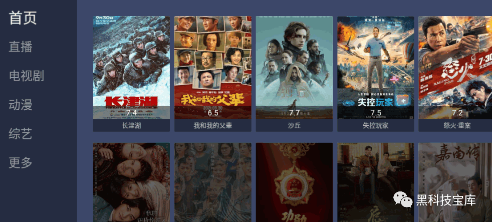 4、内置影视资源库,具体在左侧菜单栏里「更多」,展开之后就可以看到影视库资源入口。