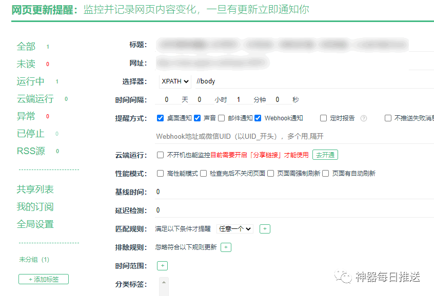 网页更新提醒,监控网页/RSS内容更新,并立即通知, 常用的场景(包括但不限于):