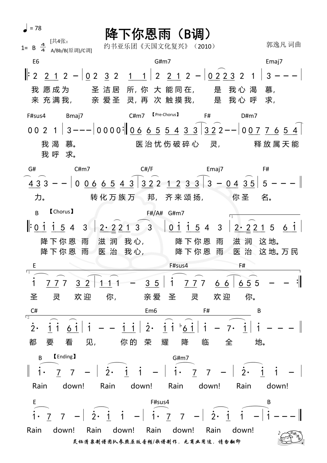 歌谱(B调):
