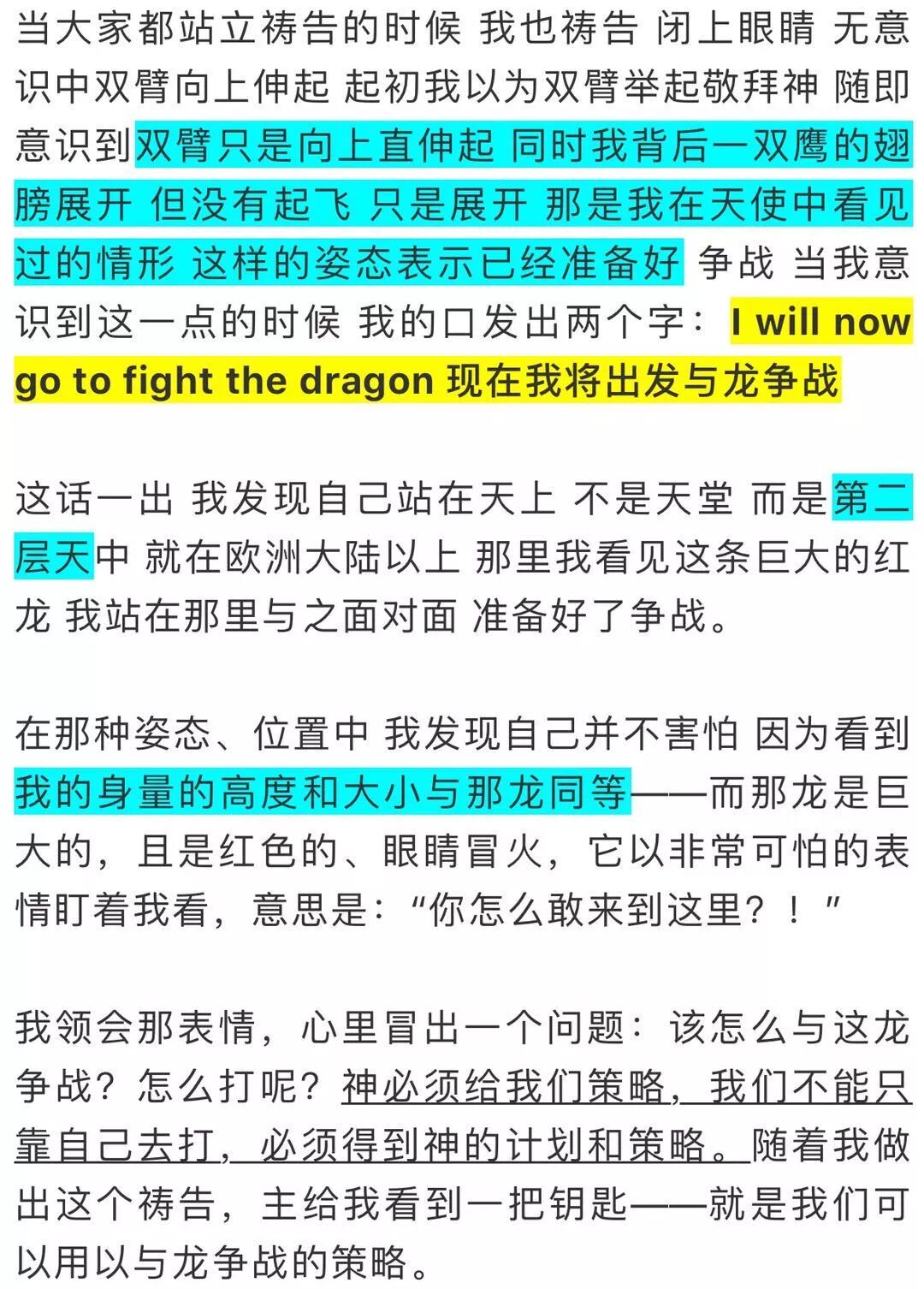 于是我问主该怎么争战呢?主的话给我一个策略来打败龙,而那策略是主耶稣自己用以与龙争战的。这整个的策略可在《以西结书》28:12-19找到。你们有纸版圣经吗?
